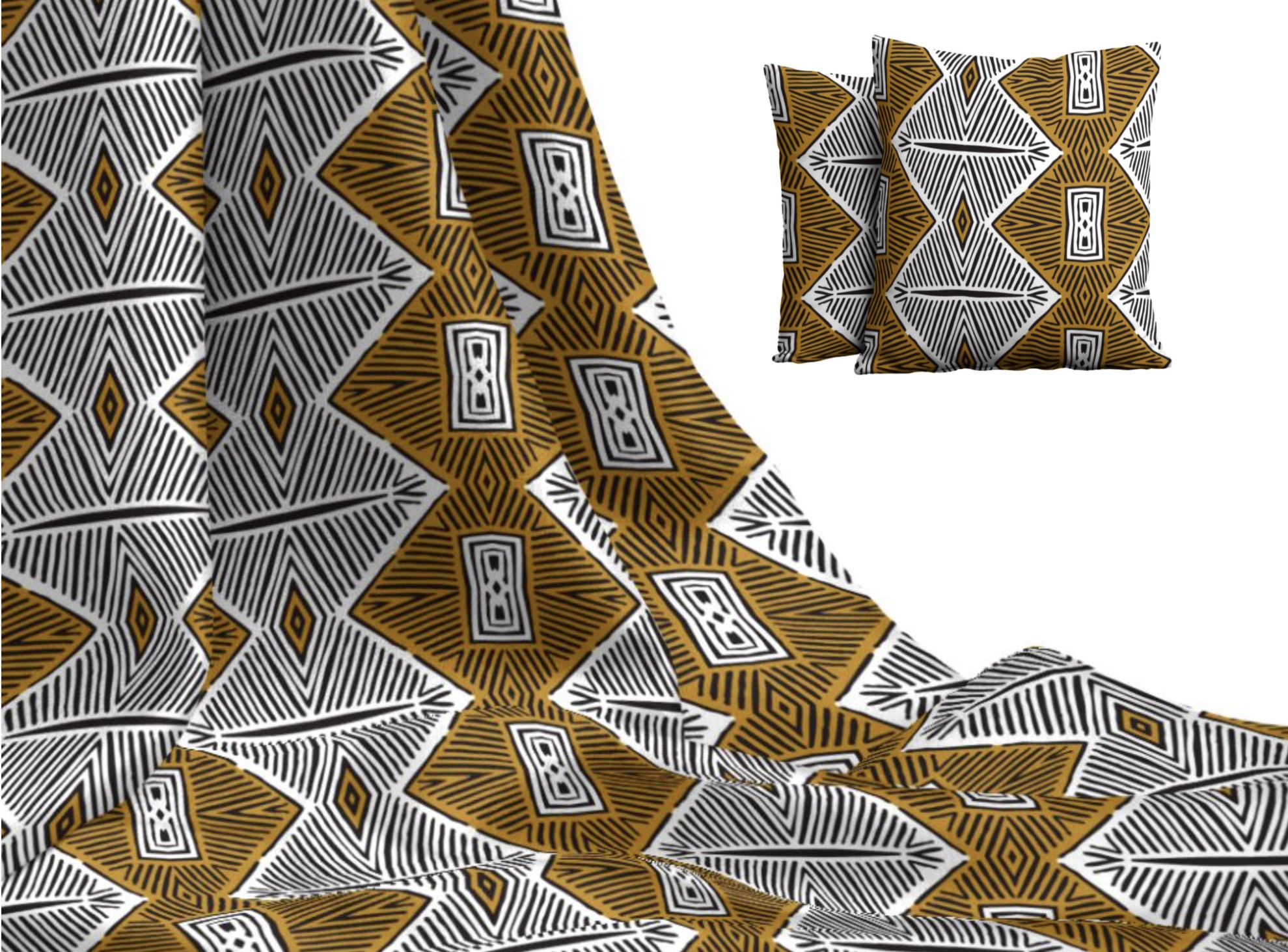 Produktinformationen "Stoff Meterware Kollektion IN&OUT Morogoro mehrfarbig orange-weiss-schwarz"