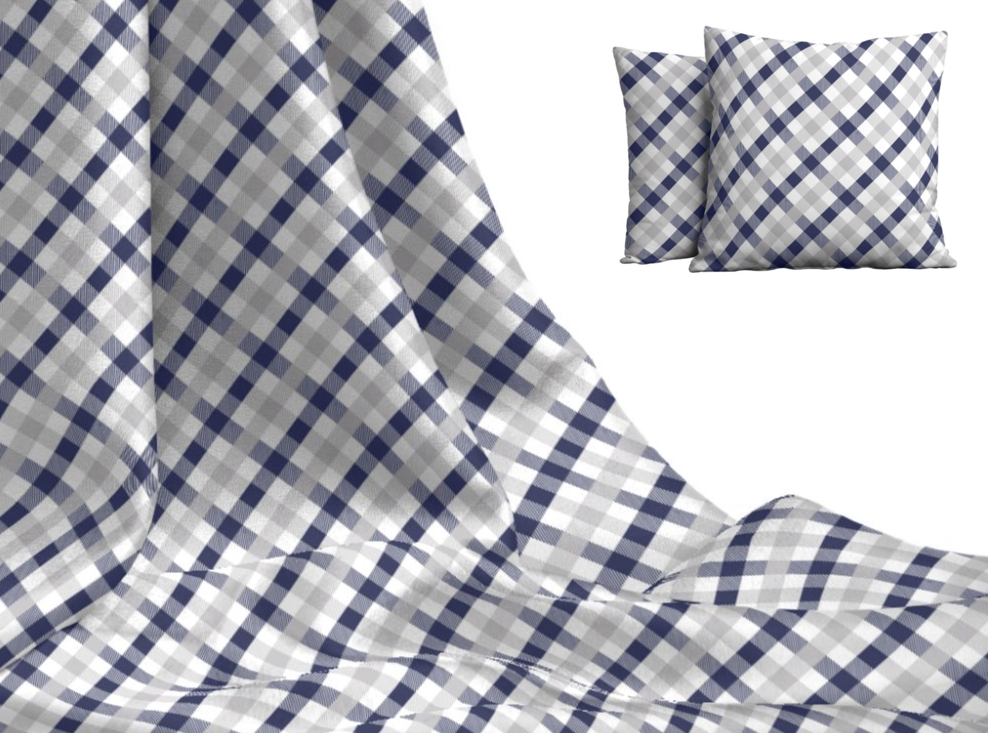 Produktinformationen "Stoff Meterware Kollektion IN&OUT Valletta blau-weiss-grau kariert"
